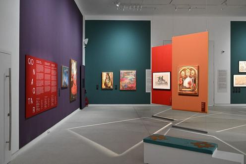 La section Kazakhstan compte deux expositions. L’une d’elles s’intitule « Қонақтар », ce qui signifie « invités » en kazakh. Il s’agit d’une collection personnelle de Smagulov, le fondateur du musée. L’exposition a été organisée par la conservatrice Inga Lāce, venue de Lettonie, ce qui nous réjouit beaucoup, car elle a un regard « neuf ». Elle a créé une exposition sur la manière dont les traditions d’hospitalité sont utilisées dans la vie moderne. On y trouve, par exemple, une œuvre de Salikhitdin Aitbaev datant des années 1970, l’une des versions du « Dîner des tractoristes ». Les personnages de ce tableau s’invitent mutuellement à s’asseoir, faisant preuve d’une véritable hospitalité.