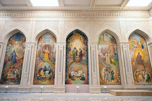 ℹ️ Le Centre de la civilisation islamique est construit à côté du complexe de Khast-Imam. Le bâtiment est réalisé dans le style des monuments architecturaux médiévaux, avec quatre portails de 34 mètres de haut chacun et un dôme central de 65 mètres. Il comprend une salle du Coran, une salle de conférence de 460 places et un musée dont les expositions couvriront toute l’histoire de l’Ouzbékistan — de l’époque préislamique à nos jours. Le CCI est destiné à devenir une plateforme pour l’étude de l’héritage des ancêtres et sa compréhension actuelle en coopération avec l’Académie internationale islamique d’Ouzbékistan, ainsi qu’avec des centres scientifiques et éducatifs du monde entier.